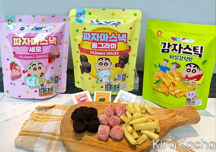 韓國蠟筆小新羅勒大蒜風味薯條、迷你可可風味餅、迷你草莓風味餅