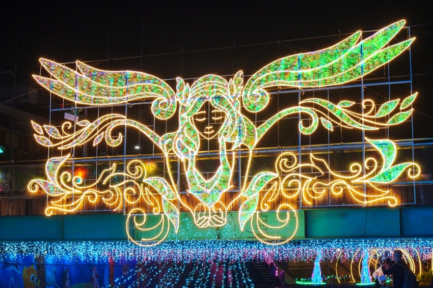 今年的焦點之一是自信橋上的5米高「光之女神」,她象徵著對中港大排的祝福與守護。特別設計的「心戀中港」以愛心造型搭建,成為女神為每對情侶加持的地方。此外,還有象徵希望的「蒲公英夢幻園」,是女神聆聽大家願望的後花園。整個展區的橋下及樓梯扶手欄杆都布置了璀璨浪漫的燈飾,現場更有超過三百萬盞LED燈相互輝映,交織點亮整個中港河廊,帶領遊客進入夢幻、藝術、希望與幸福的秘境。